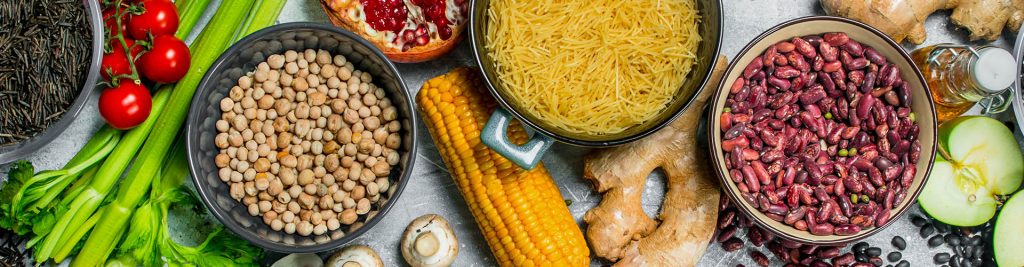 An adult requires 25-38g of dietary fibre each day. Fibre-rich plant foods include wholegrains, fruit, vegetables, legumes, beans, nuts and seeds. Aim for half of each meal consisting of produce and include more plant sources of protein to achieve this daily target.