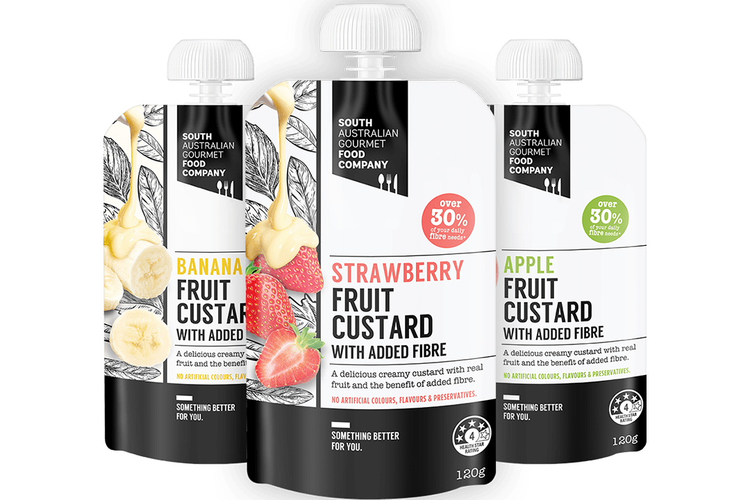 Each delicious South Australian Gourmet Fruit Custard with Added Fibre gives your body 10.9-11g of dietary fibre. An adult requires between 25-38g a day for health. By enjoying one fruit custard in your day, you will be well on your way to achieving your daily fibre needs and stay regular.